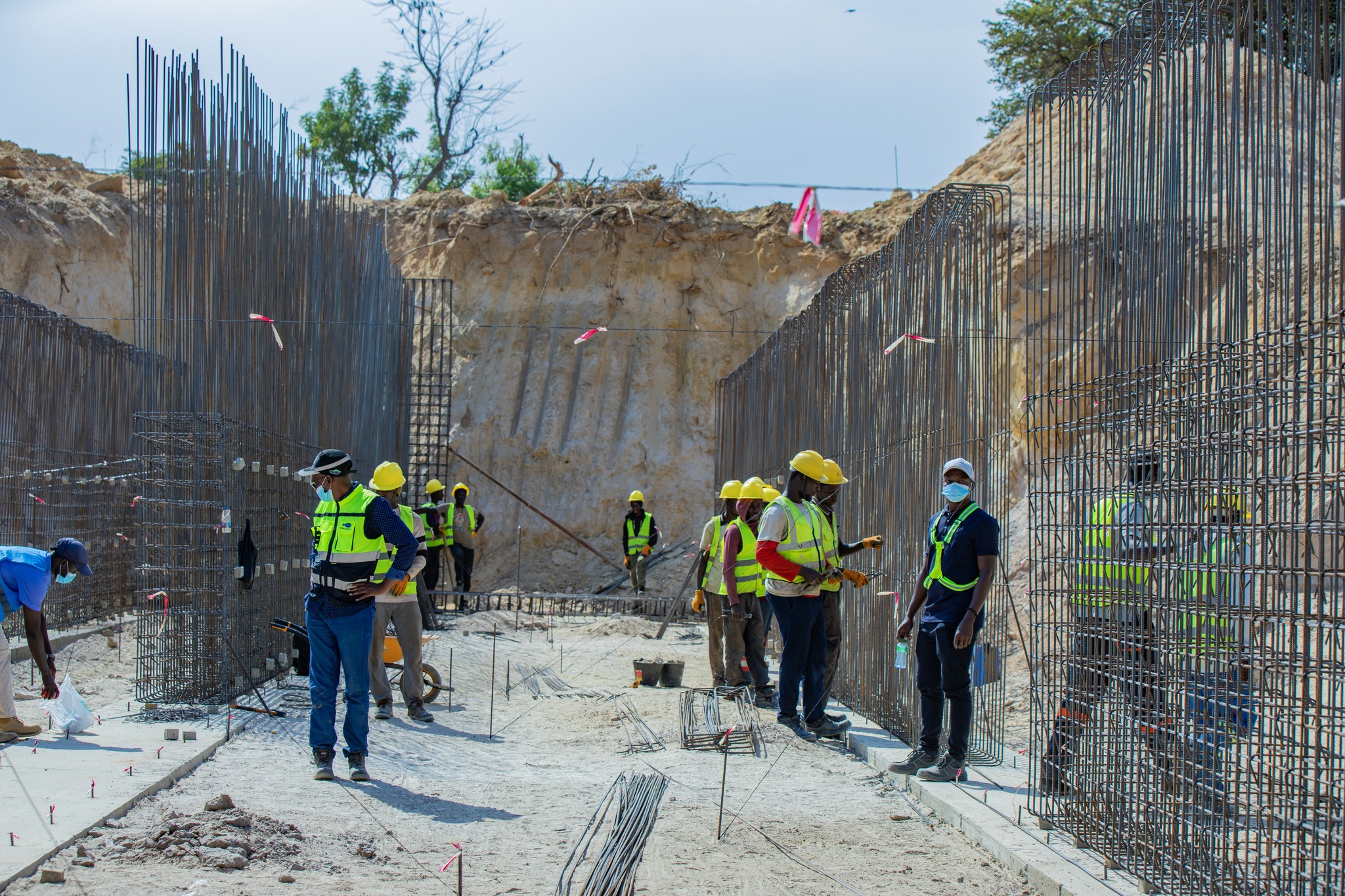 La visite a permis de constater un avancement des travaux sur les principaux sites de Ida Mouride, Ida séko, Thiakho, Taba en amont de Koungheul ainsi que sur les sites de Kosocé, Koumbidia et Fass Tchéckène. Les engins sont à pied d’œuvre et les ouvrages sortent de terre, matérialisés par les ferraillages et les coffrages d’un côté et de l’autre les dragages du lit mineur du cours d’eau se mesurent jusqu’à 3 m de profondeur sur certaines parties.